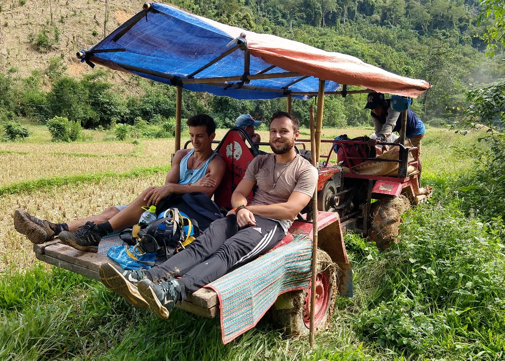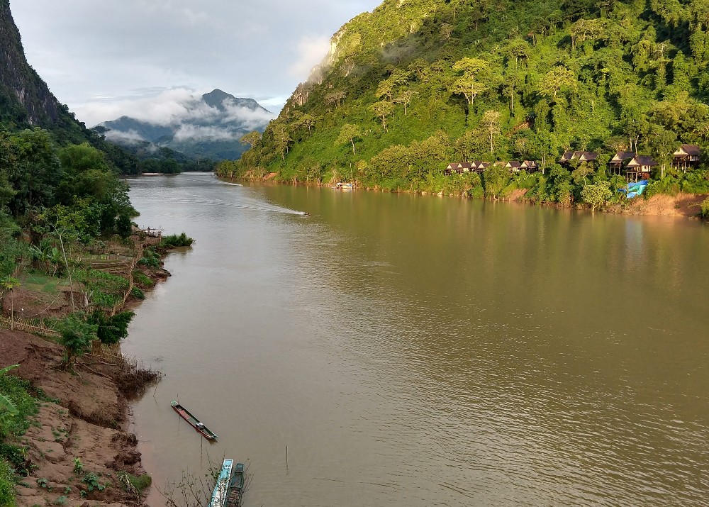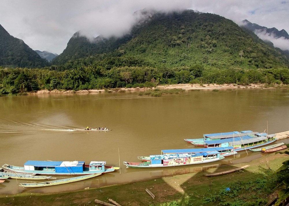 12 November 2018by Chris Wylie Laos Muang Khua, Muang Ngoi, Nam Ou, Nong Khiaw5 Comments Introduction Laos is a mountainous country. Ample rainfall provides for lush forests. There are numerous slow moving brown rivers with small villages and clusters of homes scattered along the banks. From time immemorial, many of these outposts were inaccessible by land and only threaded together by boats and ferries. The Nam Ou river drains a large section of northern Laos, just south of the Chinese border. After meandering 250 kilometers, it joins the mighty Mekong just upstream from Luang Prabang, Laos’ second largest city. Our Itinerary Simone and I boated down the Ou river on the daily ferry from Muang Khua to Nong Khiaw. Along the way we laid over two nights at Muang Ngoi. Muang Khua We journeyed to Muang Khua with four other travellers we had met from previous adventures. Finn, from Belgium, had joined us a week earlier at the Lao border in Chiang Khong, Thailand. Michael, from Germany, had been on our jungle trek several days earlier in Luang Namtha. Two Vietnamese women had joined us the day before in Oudamxai. In the morning, we had all piled into the local bus. Yes, there were chickens in the back. Available Snacks - Pig Skin, Chilies, Salted Fish and Grubs We slowly wended our way along the twisted and potholed roads. Vast swaths of forest have been converted to rubber tree plantations depriving locals of ancestral hunting grounds for both animals and edible vegetation. Homes and businesses have sprung up along the roads - many of them just a few feet from the asphalt. Dogs and pigs and motorcycles would sometimes choke the highway. Somehow the passing vehicles just fit into the fabric of life without causing any harm. We arrived in Muang Khua in the early afternoon. Our guesthouse was precariously perched on a steep bank across the river from the village center. To reach it, we crossed over via an impressive suspension bridge. The town still had some French charm with coffee, baguettes and hints of colonial architecture. Modernization is bringing more Chinese goods, WiFi, smartphones and a change of culture. We could see the impressive Chinese-Lao railway under construction. Cement plant and train trestles with strings attached. Muang Khua is an excellent departure point to visit hill tribes as well. There are a lot of tribes and very few trekkers. Many villages only see tourists a few times a year. Hmong hill tribe women along the highway. There are many similarities to the people of northern Thailand and northern Laos. At one time they were both part of the Lanna kingdom and their languages are still similar. Although Thailand does not have the French influence, many of the traditional foods are the same. The most striking quality, to me, was a sweet gentleness. In their culture it is honorable to be gracious and give way. To be pushy or ‘stand your ground’ is seen as uncouth. No one hassles you, or is assertive in their negotiations. Sure they may ask for a bit more in the markets, but it is never unreasonable and they quickly agree to a price that is “good for you and good for me”. More often than not, we were offered the local price right off - especially for food. They seemed to find pleasure in being kind and fair. The relationship, even if fleeting, was more important than petty profit. The next morning, the two Vietnamese women took an early bus to the Viet border - they were on their way back home. The rest of us headed down to the local ferry, which already had more than its quota of tourists. As more tourists continued to show up there was one round after another of shuffling and moaning to get all of us into the narrow boat. Right when we were finally settled and about to leave a second boat showed up so we positioned ourselves all over again but this time with more room. Soon we were off, half carried and half motored down the muddy river. The day was warm and with a cool breeze. After three or four hours we approached a massive dam under construction, part of the extensive Chinese investment in Laotian infrastructure. The boats beached upstream and we were all shuttled around the dam in dusty pickup trucks to a dock down river. This time we were all packed like sardines into a single boat. There was a mixture of laughing, disbelief and grumbling. After a few more hours motoring downstream we finally arrived at our destination. Muang Ngoi Until recently, Muang Ngoi was only accessible by river boat. As part of Laotian rural development, and to compensate for the disruption of river transit that the new dams are causing, many remote villages are now getting overland road access provided. Simone and I spent a few nights here, hiking to local tribal villages, exploring caves and chillaxing on the restaurant verandas overlooking the river. Nong Khiaw Before we knew it we were on heading down river again. Tall karst mountains stood sentinel on both sides, their peaks shrouded in mist. One of the first things we saw approaching Nong Khiaw was a high bridge spanning the beautiful gorge. Overall the town was quite beautiful and there was a nice assortment of restaurants including an Indian joint that served vegetarian thalis. Several hikes scaled the local hills up to a spectacular overlooks. Jungle Fly Zipline One day I joined a rough and ready crew on the local Jungle Fly zipline expedition. We motored deep into the nearby mountains with an unusual 4 wheel drive tractor contraption. After about 40 minutes, we hopped off and continued by foot. Up and up we went until we were at the top of a watershed between two karst mountains. The guides gave us a quick intro to how the equipment worked and, most importantly, how to brake in order to decelerate because the 12 different zip lines had two speeds - fast and very fast. The gathering river below was clear and inviting, cascading down the steep canyon crowded by dense forest. The zip lines were lost in the foliage, only dropp